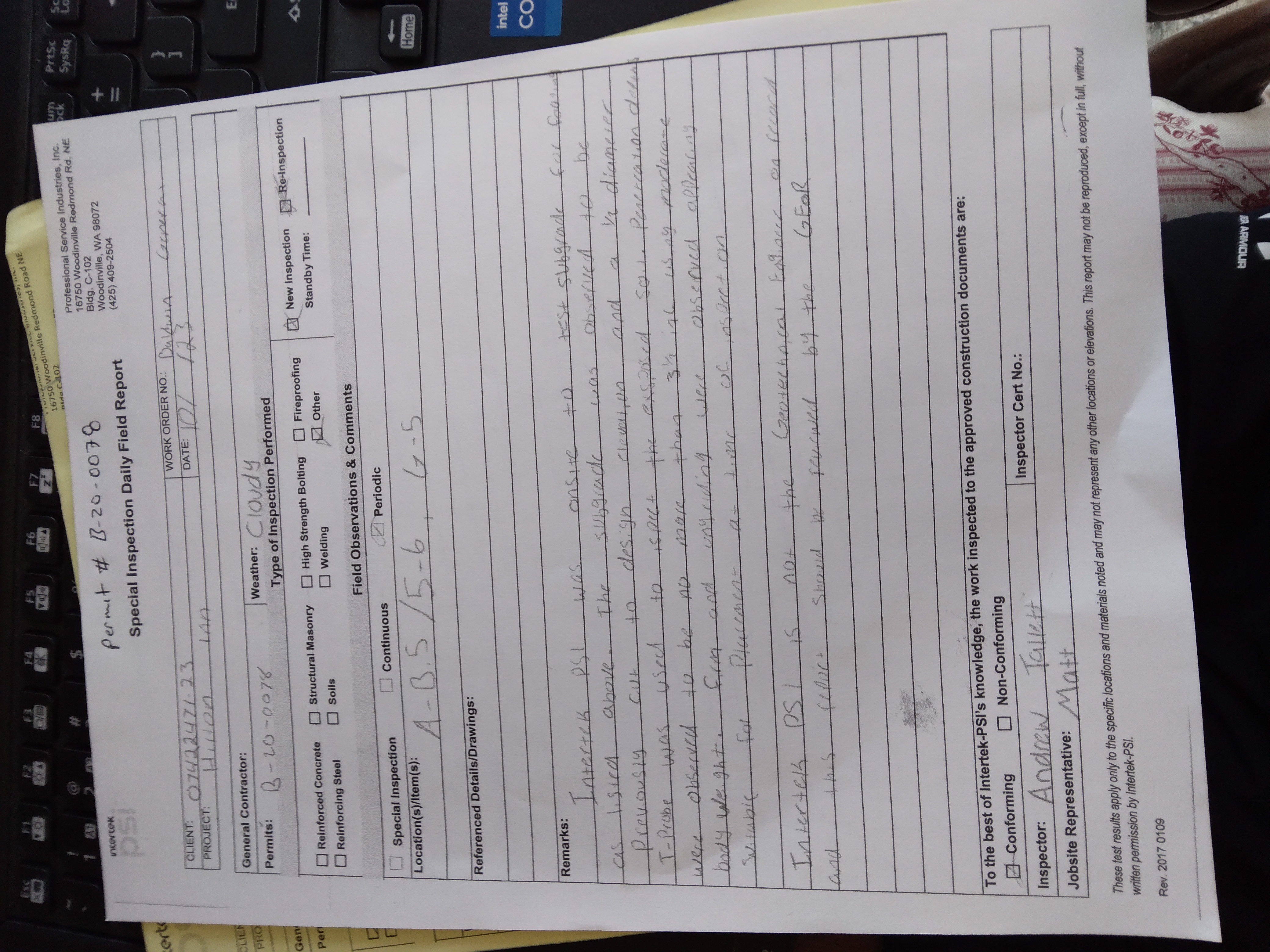 2. ok to pour per special inspection approval footings only