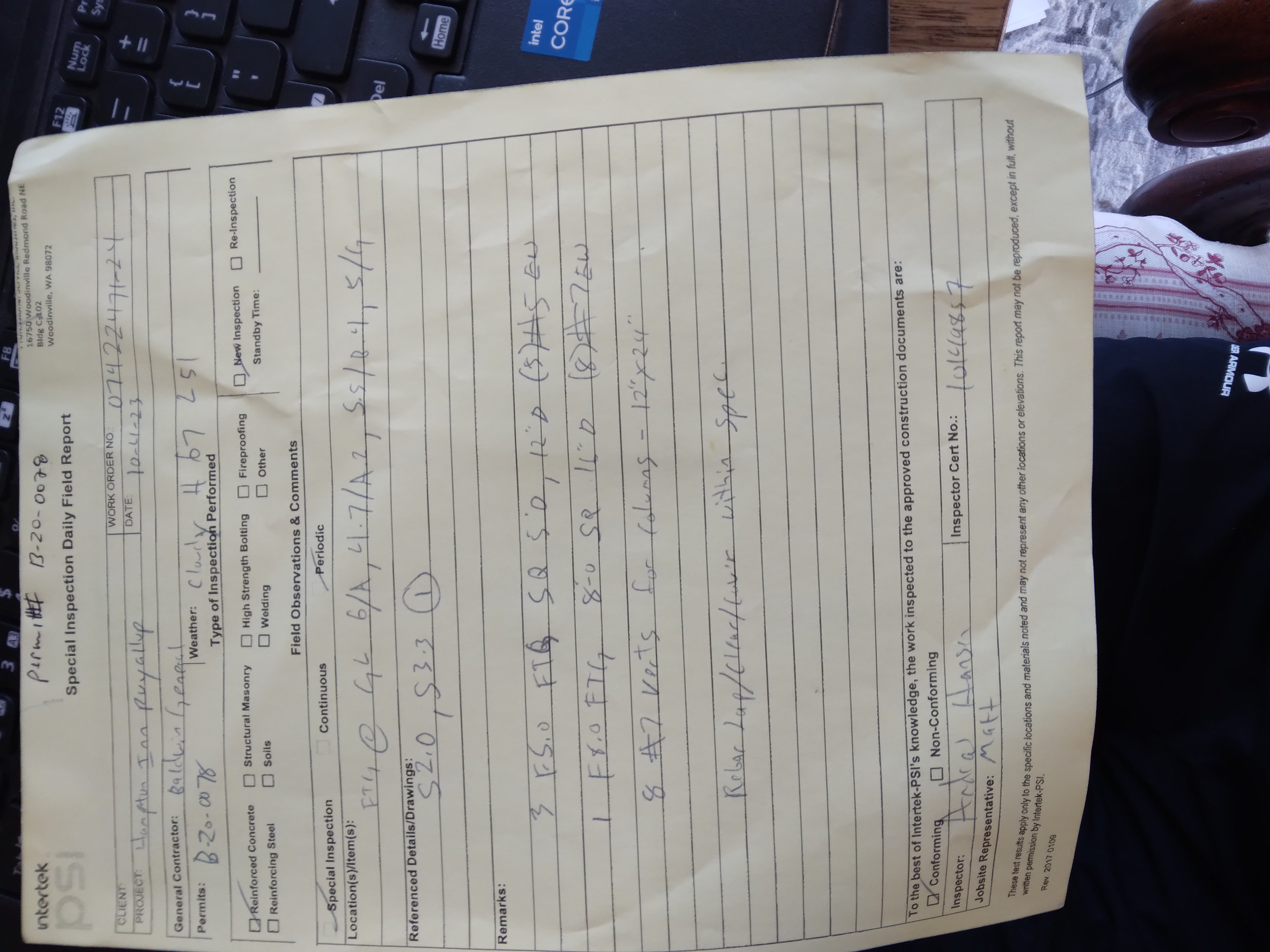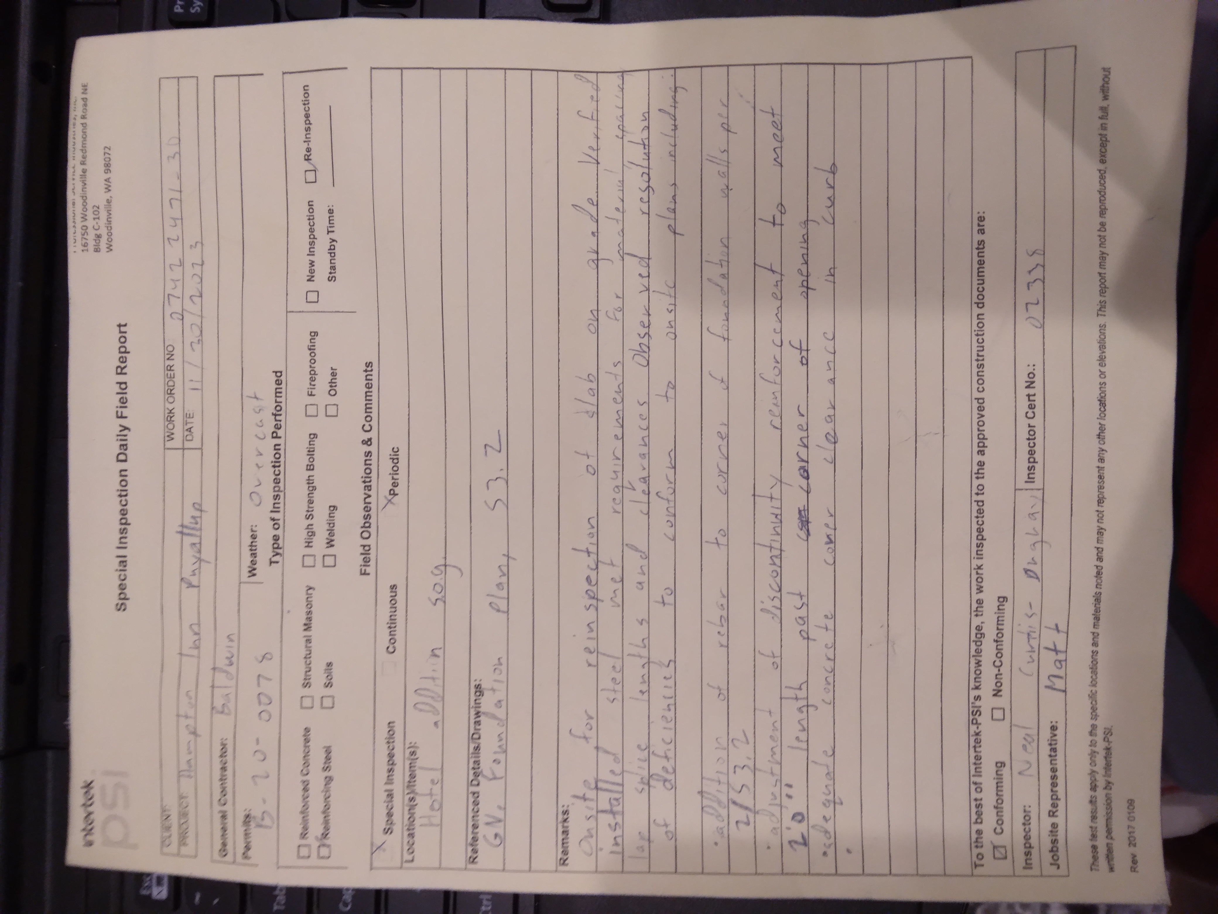 | Foundation/Rebar Inspection | Partial Pass | 9/14/2023 | 9/14/2023 | 09/14/2023 |