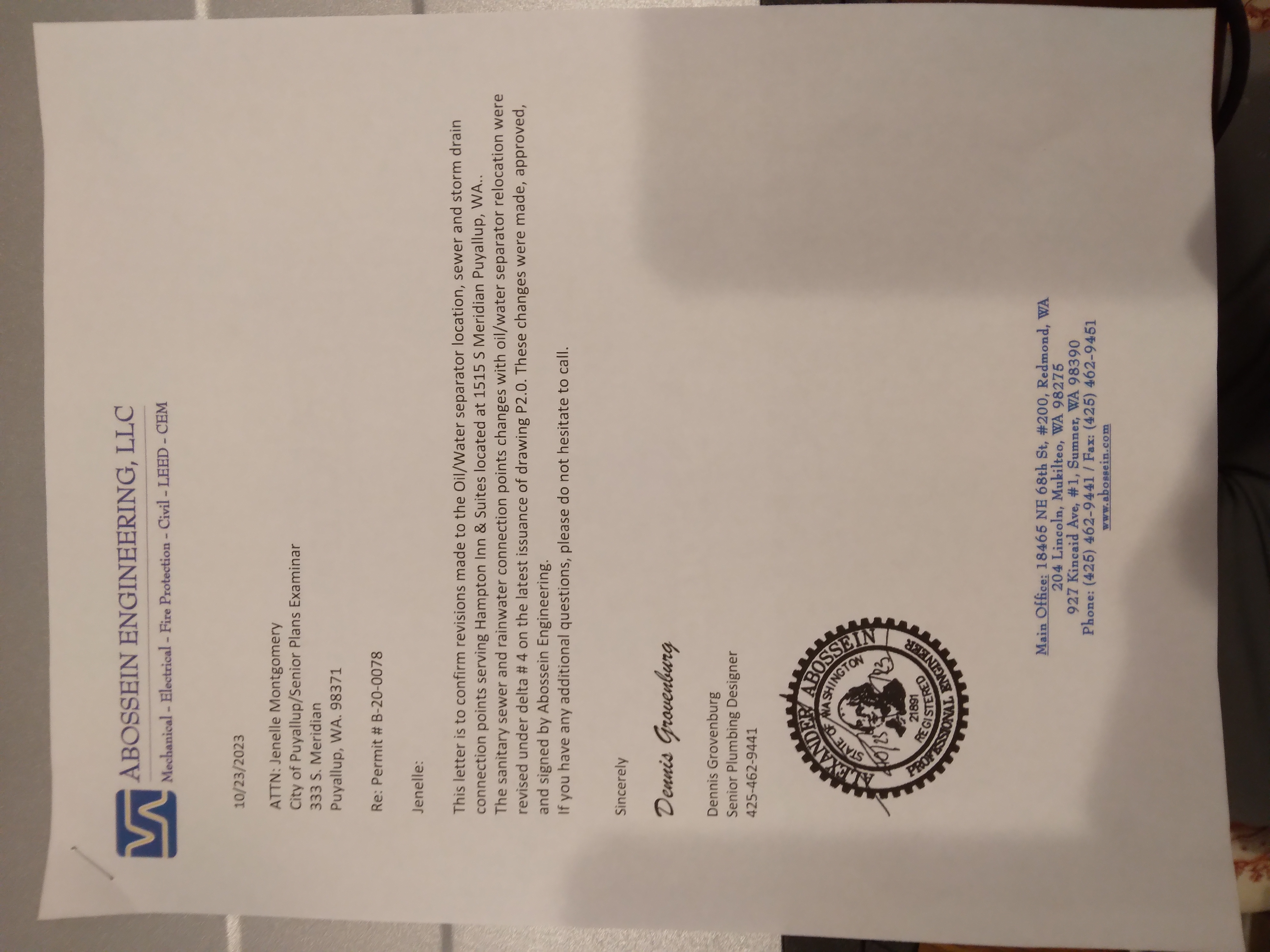 Should you need assistance, please contact the Permit Center at (253) 864-4165 option 1.