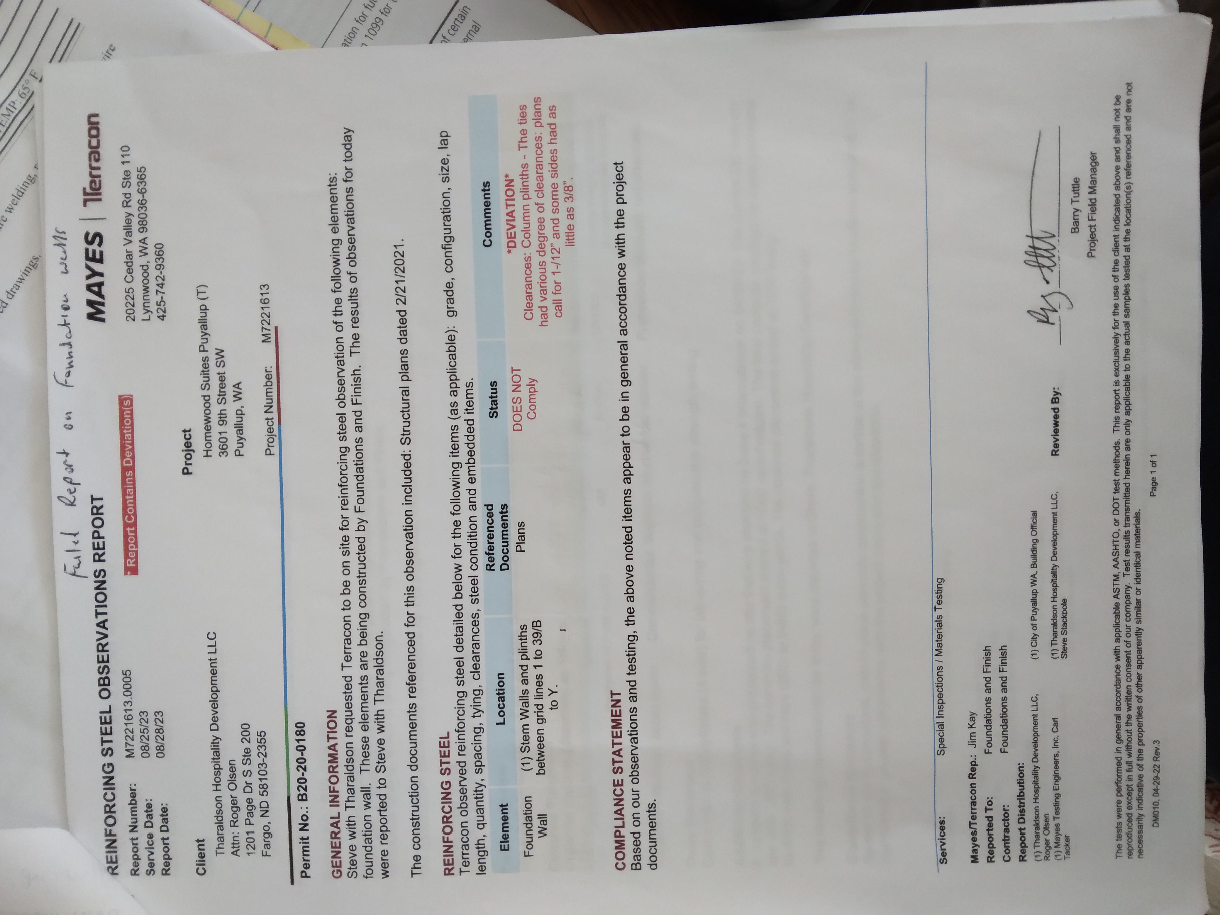 | Foundation/Rebar Inspection | Partial Pass | 8/3/2023 | 8/3/2023 | 08/03/2023 |