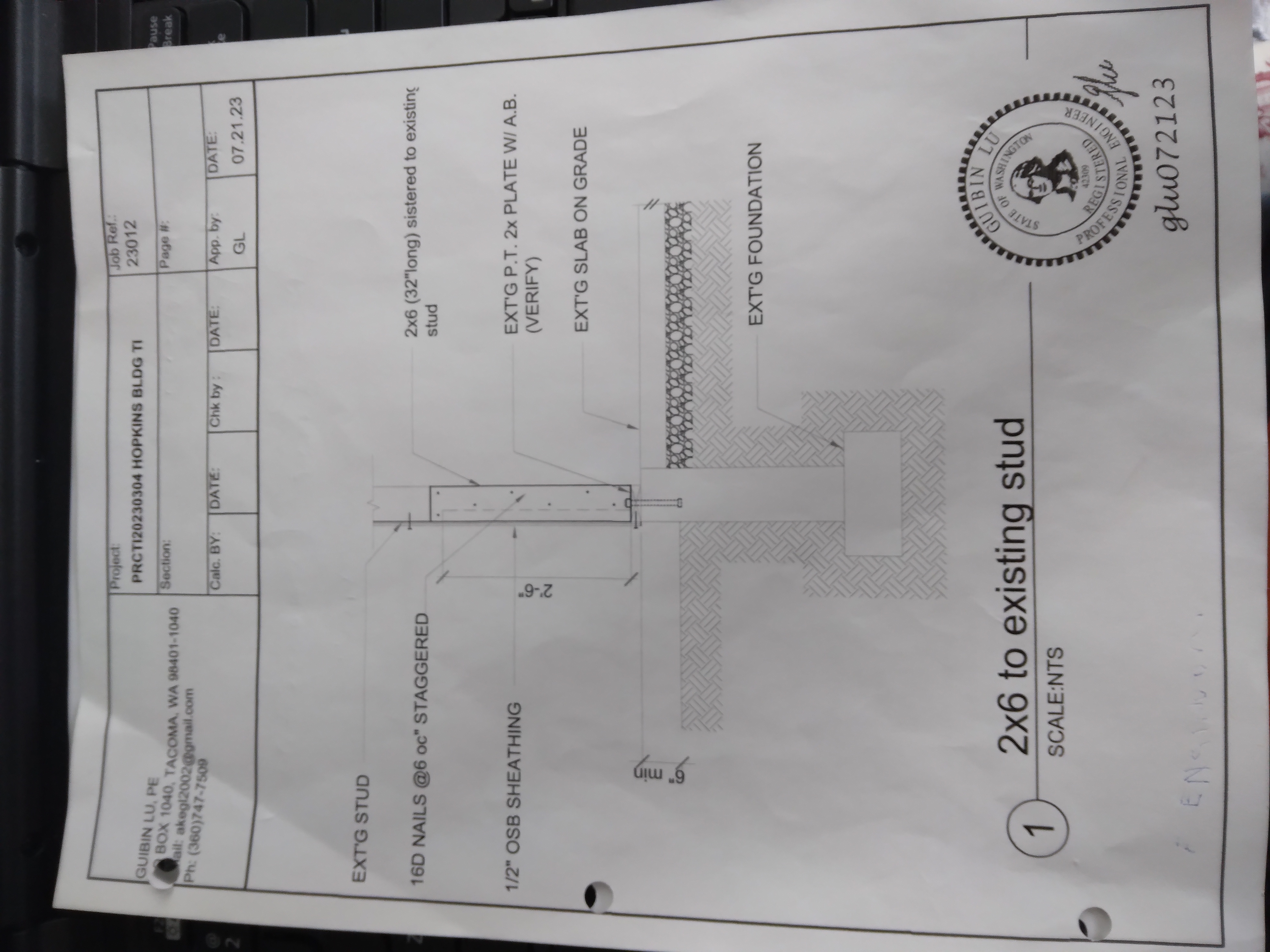 2.provide engineering for stud repair at bearing wall as discussed with contractor