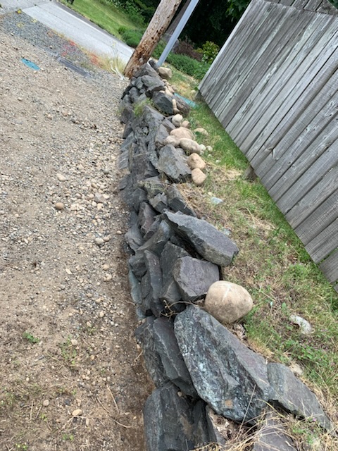 Regrade trenched area near the trees, remove roots and excavated rocks and place crushed to match existing at the carson location.