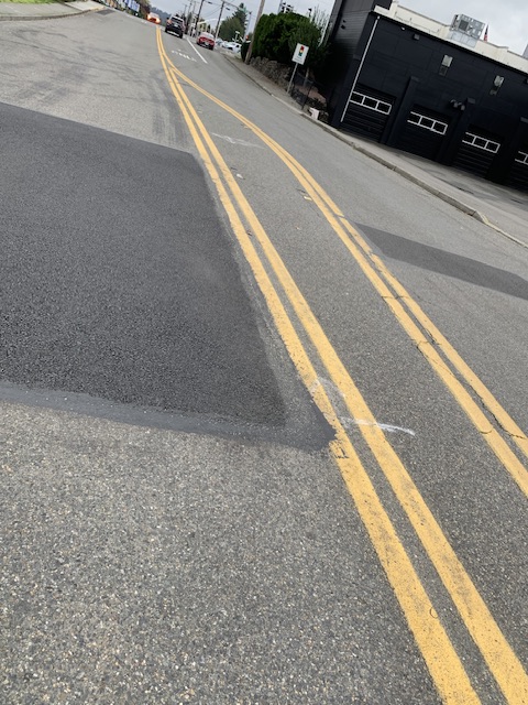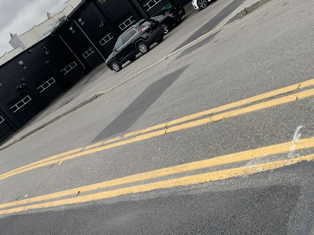 2. - Yellow stripe CL & gore where grinder and/or sealer was installed, along with dirty tack tires crossing.