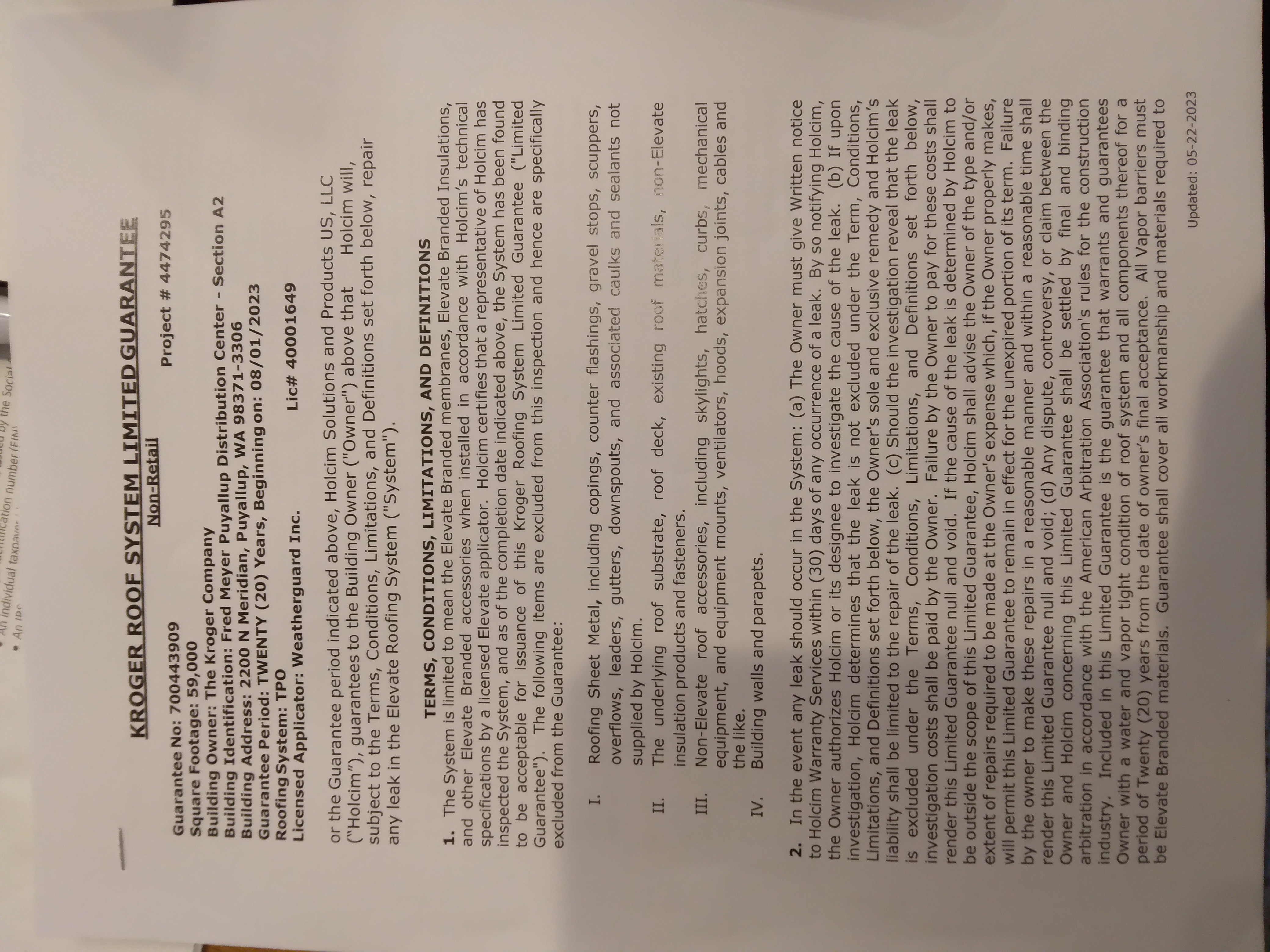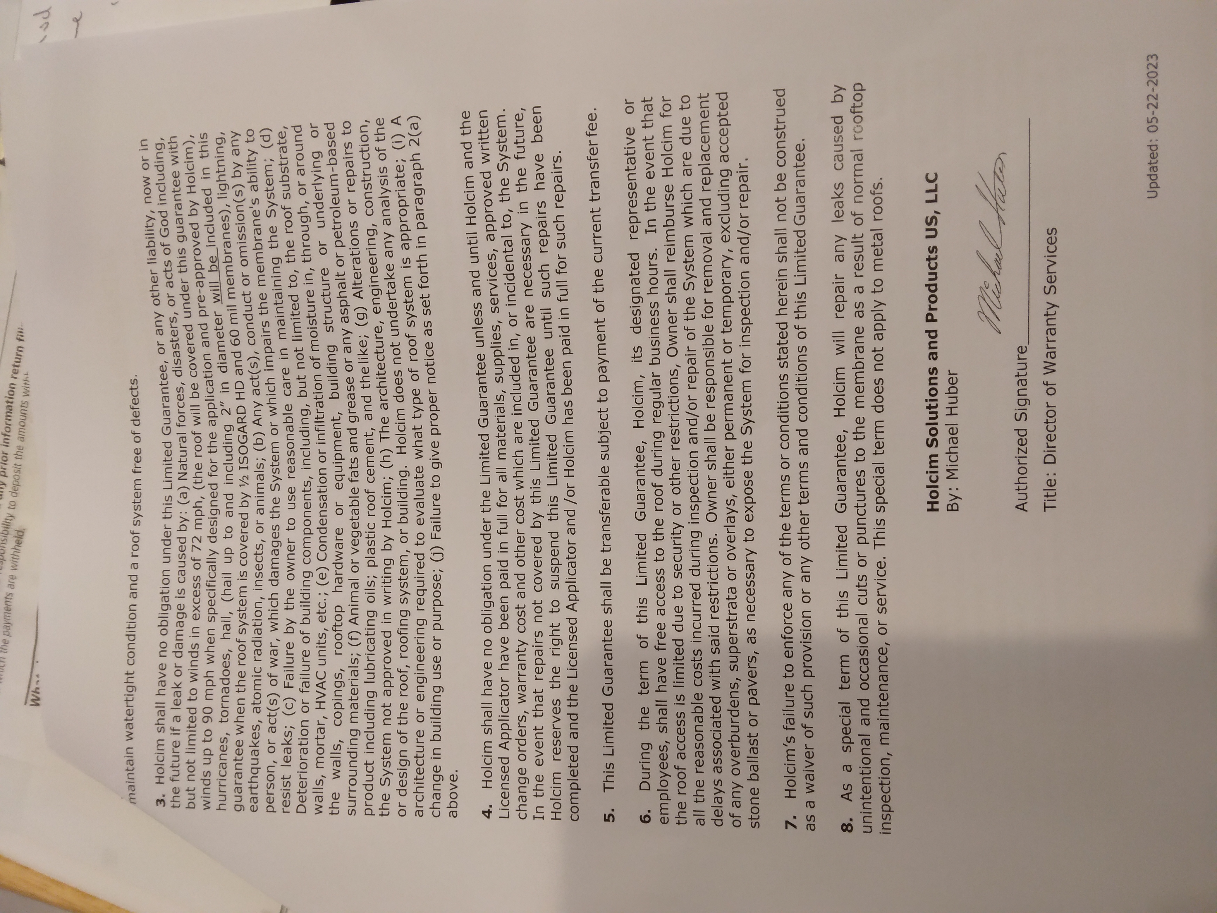 2. provide all warranties as discussed at time of next inspection